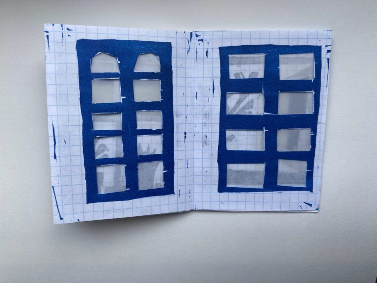 Om mijn onderzoek nog een extra laag te geven ben ik met het gedrukte resultaat aan de slag gegaan. Want wat gebeurd er als je de ramen ook echt gaat opensnijden en dit gaat verdelen in verschillende fases? Dit dekte precies de lading vertelde mijn boodschap: Wie iets langer niks doet, ziet na een tijdje veel meer.