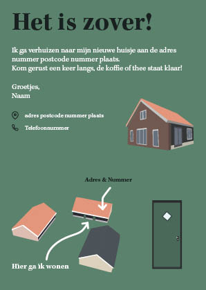 Verhuiskaartje Vrij werk Datum & opdrachtgever Oktober 2023 – vrij werk Opdracht omschrijving Maak een verhuiskaartje met illustratie van het huis.